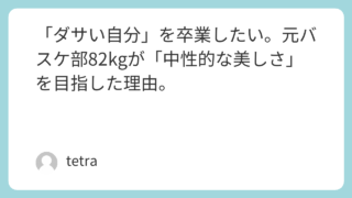 「ダサい自分」を卒業したい。元バスケ部82kgが「中性的な美しさ」を目指した理由。