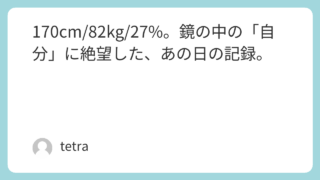 • 170cm/82kg/27%。鏡の中の「自分」に絶望した、あの日の記録。
