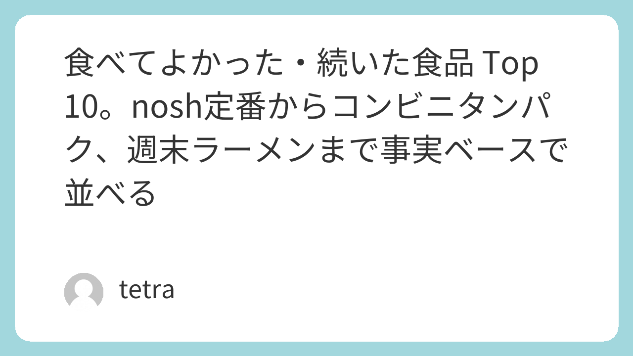 食品のランキングは、好みと体質と家計で変わります。コンビニタンパクは単価が高く、毎日だと家計に効きます。nosh も同様です。僕は「続く仕組み」に金を払うほうが、リバウンドの代償よりマシだと感じただけです。