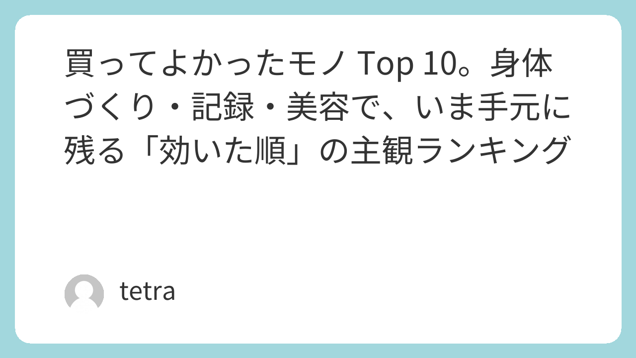 前の回で、身体づくりにいくら使ったかを税込み・約ベースで並べました。今回は金額順ではなく、いま振り返って「買ってよかった」と胸を張れるモノとサービスを、主観で十個に絞ります。