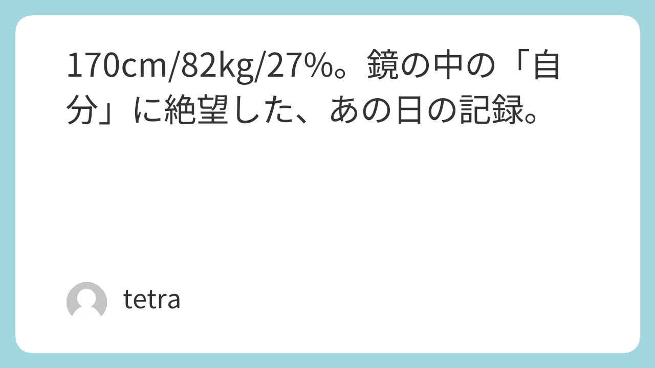 当時の僕の数字を改めて書くと、身長170cm / 体重82kg / 体脂肪率27%。