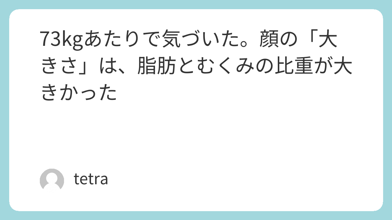 顔の脂肪のつき方、むくみの出方、骨格、年齢、体質、仕事の内容まで、人によって違います。僕の記事は個人の実践ログで、誰にでも同じ見え方になると約束するものではありません。むくみや急激な体重変化が気になる場合は、ネット記事より医療機関への相談が先です。僕自身も、理想の中性寄りのラインにはまだ距離があります。それでも、73kg前後で「顔の大きさ」の内訳を、骨だけの話に戻さなくてよくなったことは、生活を続けるうえで小さな前進でした。