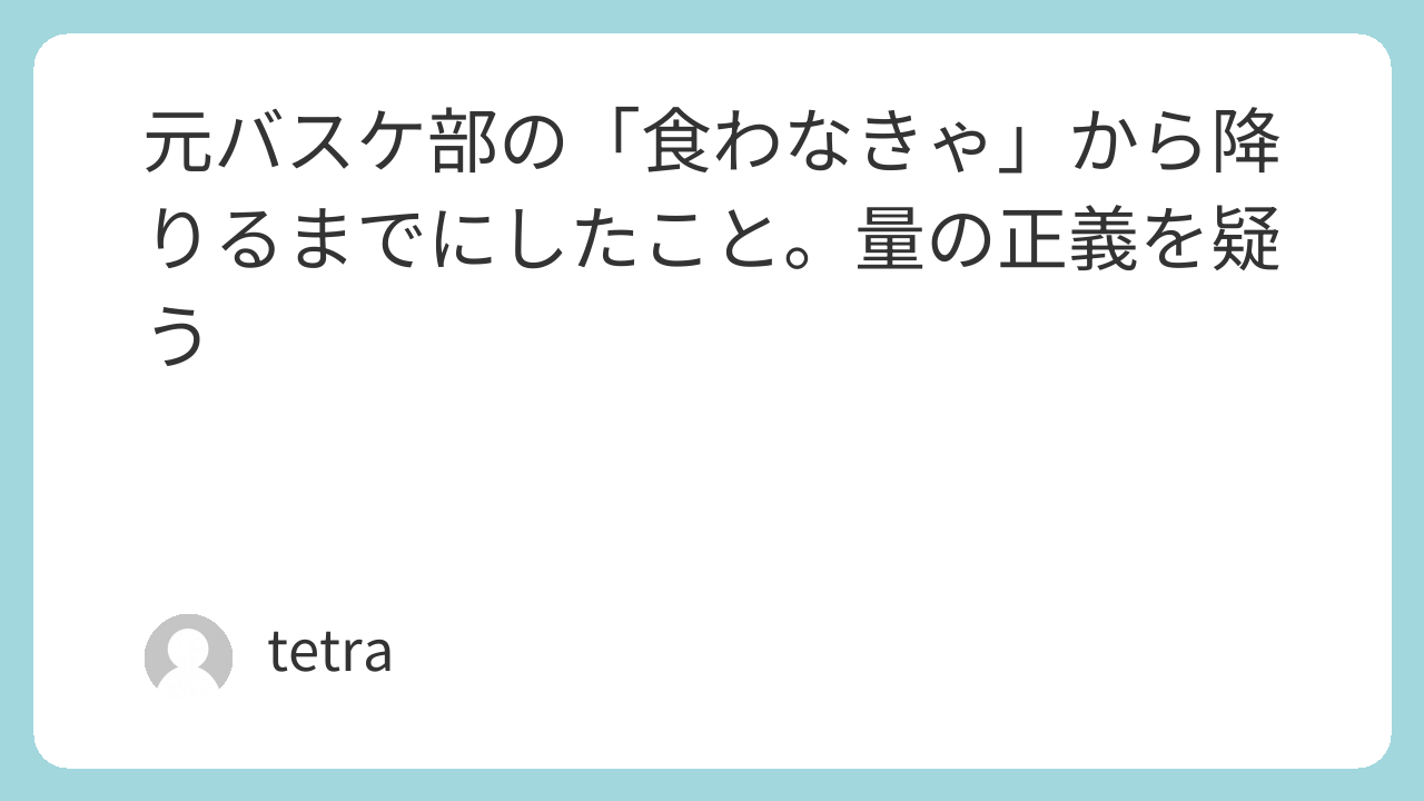 元バスケ部の人にだけ当てはまる話ではありません。運動をしていた過去があると、量の記憶が強く残りやすいです。僕の場合は、記録と目標カロリー、そして冷凍野菜を足すような小さな固定セットが、「食わなきゃ」から降りる梯子になりました。効果を約束するつもりはありません。食事制限や摂食に関して不安がある場合は、専門家の支援を優先してください。僕自身も、理想体型までの距離はまだあります。それでも、いまの生活量に合わせて食事を組み替えられるようになったことは、82kgの頃より気が楽です。