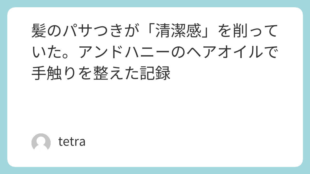 企画72番はもともとトリートメントの話でしたが、僕の事実として書けるのは、購入メモにあるアンドハニーのヘアオイルを使い始めた記録までです。サロン施術が入ったら、別稿で追記したいです。パサつきが清潔感を削るかどうかは主観ですが、少なくとも僕はそう感じる日がありました。肌と同じように、髪も「触って確認する」習慣を入れたことで、一日の手入れの輪郭がはっきりした気がします。整い方の正解は人によって違います。