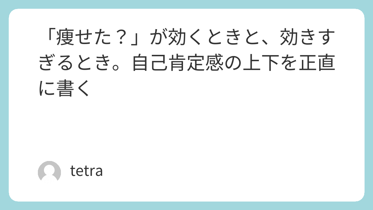 「痩せた?」が効くときと、効きすぎるとき。自己肯定感の上下を正直に書く
