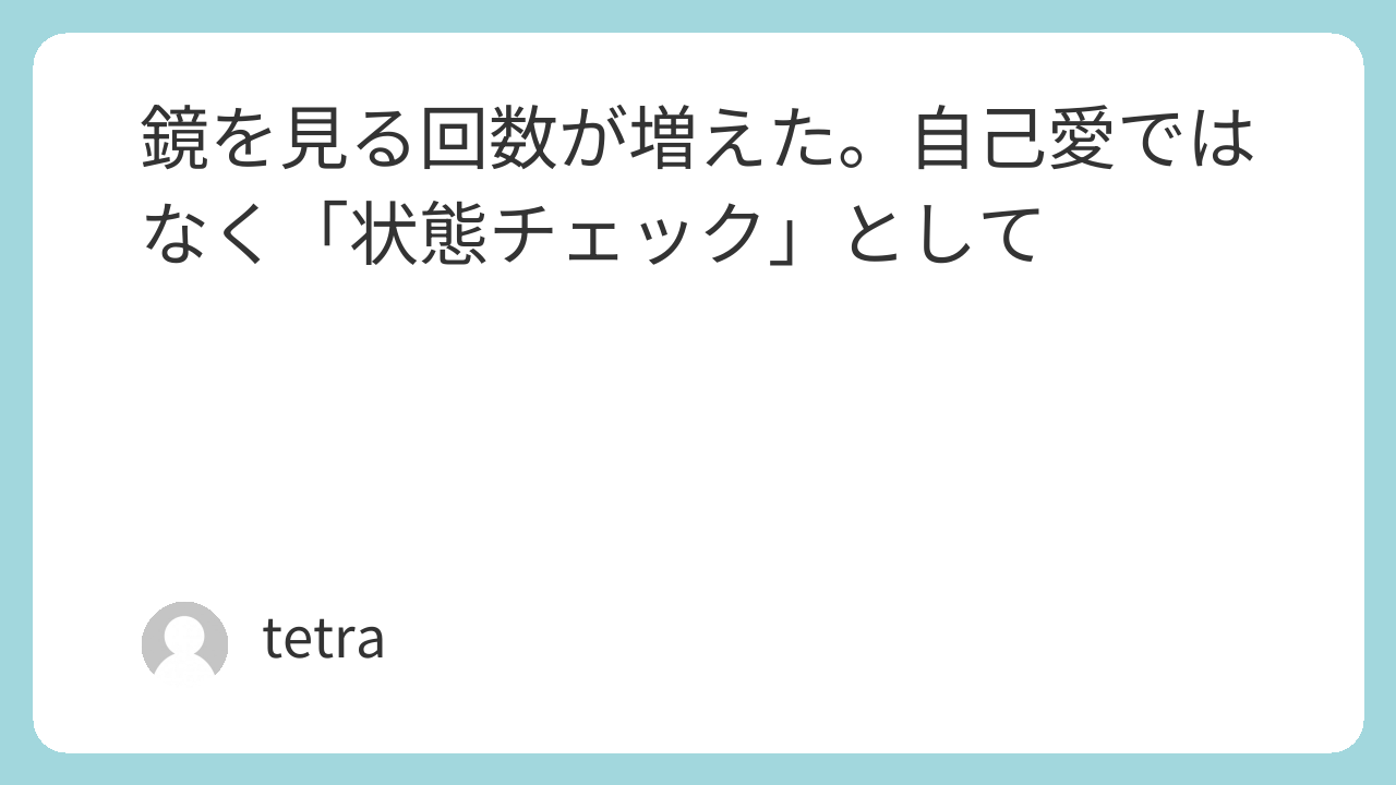 鏡を見るのが苦手な時期の人にとって、回数を増やせという話は残酷に聞こえるかもしれません。僕もそうでした。いま書いているのは、無理にポジティブになれと言いたいわけではなく、習慣が変わると鏡の意味も変わる、という経過報告です。同じように感じた人がいたら、それだけで十分です。