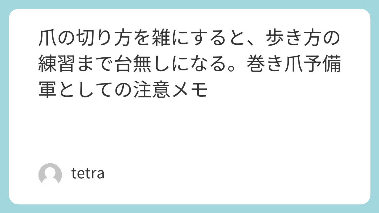 この記事は爪の病気の治療法ではありません。 巻き爪や深爪になりそうな人の予備軍として 、僕が気をつけていることをメモにしたものです。痛みが強い、腫れる、膿む、などがあるなら自己判断で済ませず、皮膚科や足の専門の受診を優先してください。