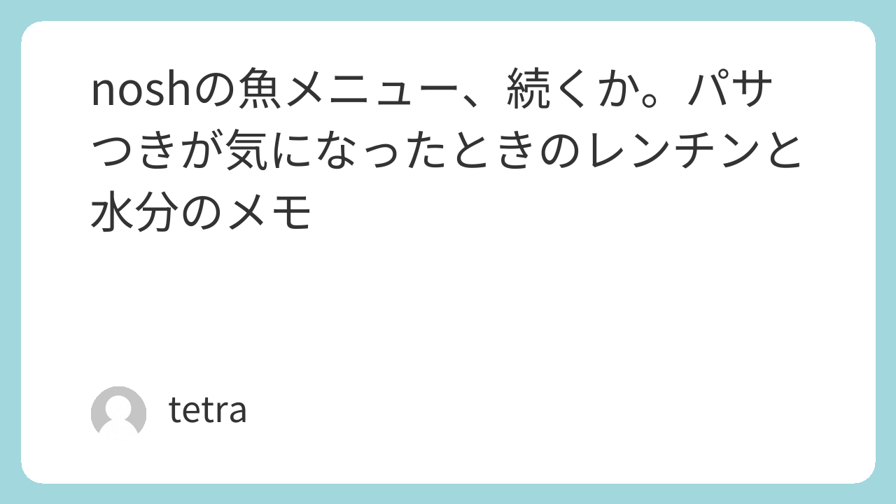 加熱時間の安全面は、メーカーの表示を優先してください。僕のレンジ・食感の好みは人と違います。魚アレルギーや妊娠・授乳、医師の指示がある場合は、自分の主治医や管理栄養士の話を優先してください。この記事は体験ログであり、特定のメニューの推奨や効果の保証ではありません。