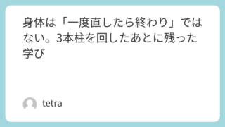 起動プロセス 身体は「一度直したら終わり」ではない。3本柱を回したあとに残った学び