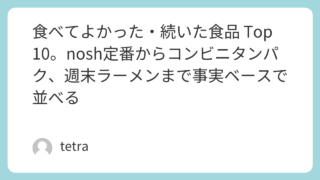 起動プロセス 食べてよかった・続いた食品 Top 10。nosh定番からコンビニタンパク、週末ラーメンまで事実ベースで並べる