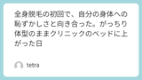 全身脱毛の初回で、自分の身体への恥ずかしさと向き合った。がっちり体型のままクリニックのベッドに上がった日