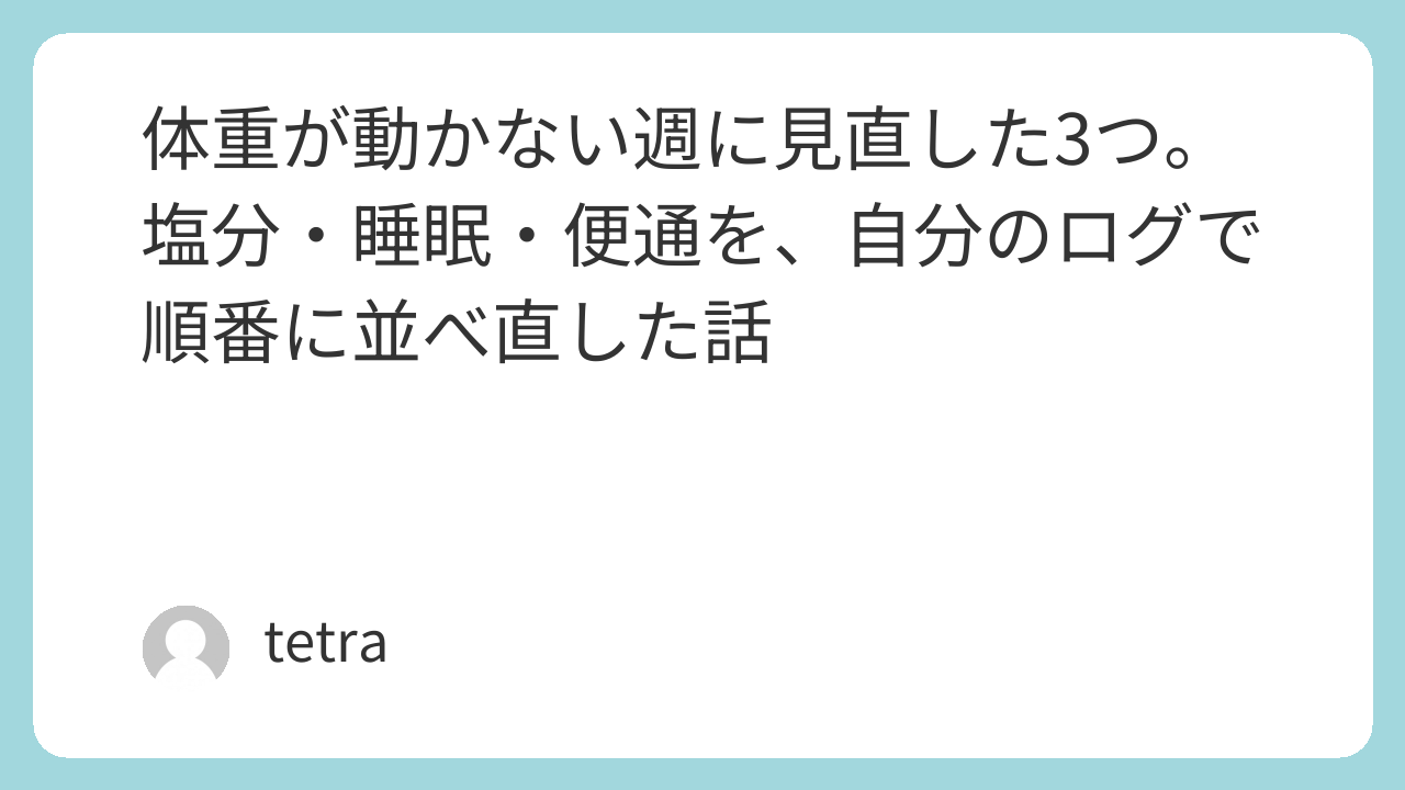 体重が動かない週に見直した3つ。塩分・睡眠・便通を、自分のログで順番に並べ直した話
