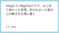 82kgから78kgのあたりで、はじめて味わった停滞。針が止まった週の心の動きを正直に書く